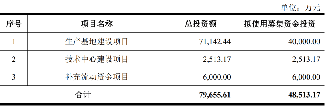 此次IPO拟募集4.85亿元,用于生产基地建设项目、技术中心建设项目、补充流动资金。