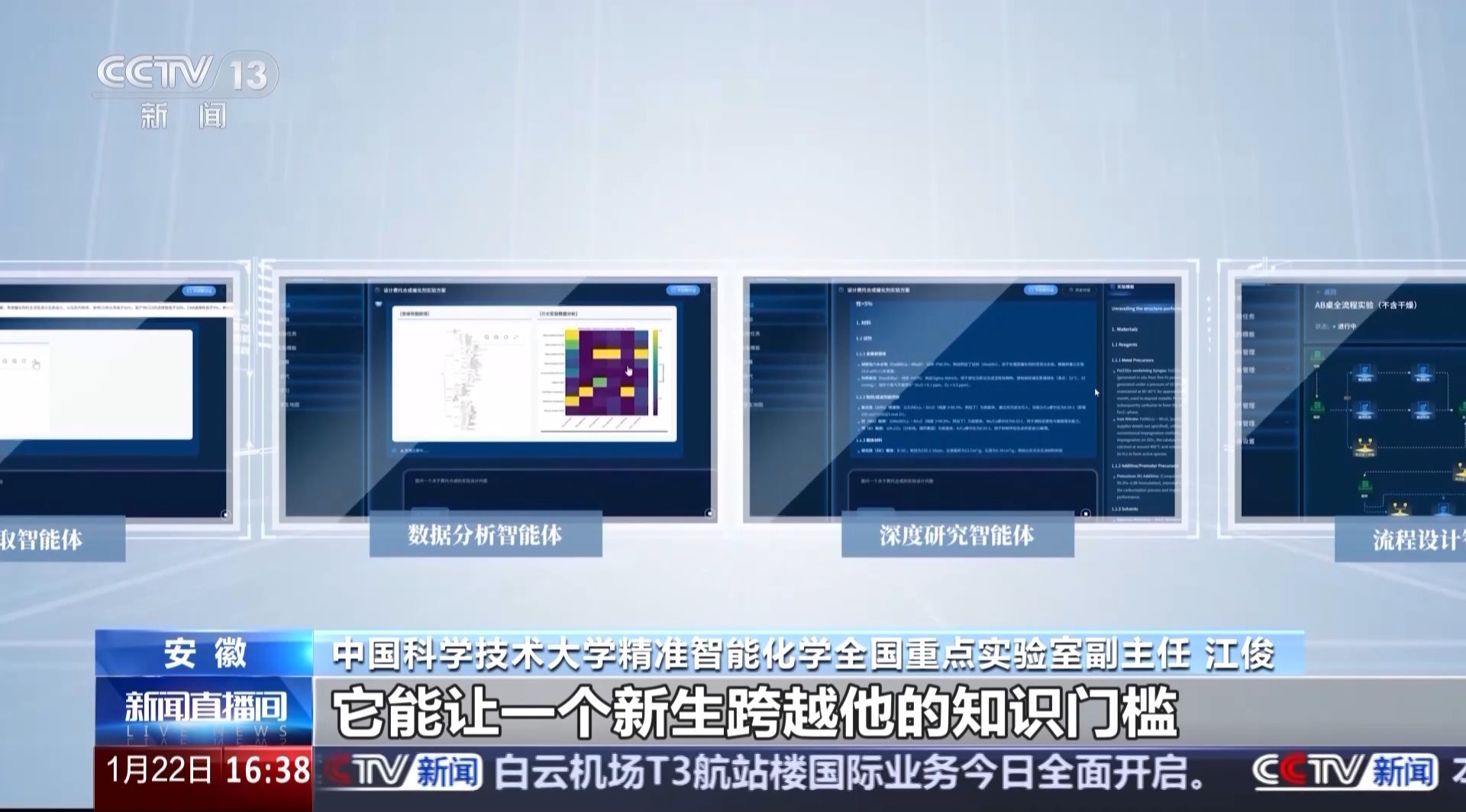 中国科学院自动化研究所副所长 曾大军:能够理解各种各样的数据、预测结构,达到一个非常好的效果。科技文献方面“磐石”的处理还是有比较独到的地方,以前需要研究生可能要花半年的时间,去吸纳、解读、理解几百篇文章写一篇综述,我们现在3个小时就能做到。还有它能够调动现在超过400种各类的计算和仿真的工具,自主地把它的能力调动起来。