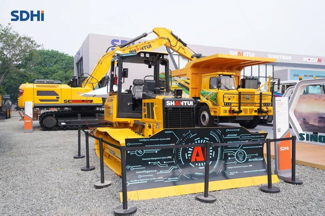 作为中国工程机械行业的“技术派”,山推此次展出的核心产品均针对印尼及东南亚市场的特殊需求深度优化,集中展示了山推在矿山机械领域的深厚底蕴与创新实力。依托山东重工集团内部优质产业链优势,山推推土机、挖掘机、装载机、平地机等多款高端矿山产品悉数登场,响应速度更快,动力更强劲,油耗更低,这些产品以减排、省油、高效、低噪的出色表现畅销全球市场。此外,山推前不久举行的AI战略发布会更是把AI技术融入产品当中,使山推产品实现了从“智能设备”到“AI 实体”的华丽质变。其搭载的“AI 决策模型”,涵盖智能整机与 AI 智能助手两大模块,并围绕客户需求打造9大智能系统,覆盖动力优化、施工安全、协同作业等核心场景,真正把产品做到了从“高效省油”到“智能可靠”的跨越。